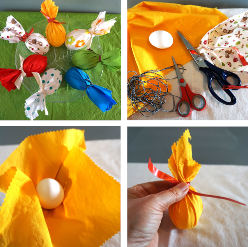 Dann packt die Oster-Eier doch in Stoff-Reste ein.